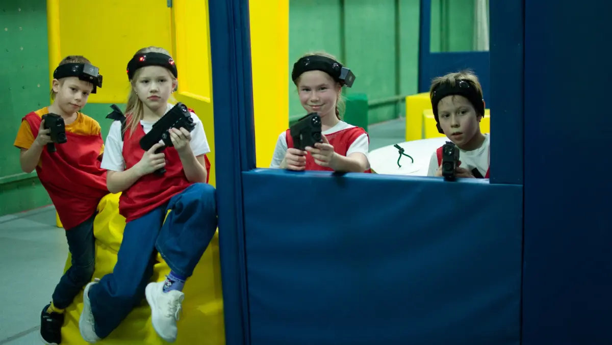 - ✓ Лазертаг (7+) — командная игра с безопасными лазерными бластерами. Подходит для детей и взрослых.