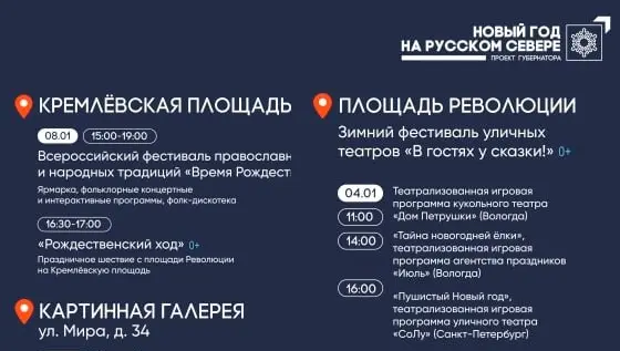 Появилась афиша мероприятий на конец декабря и январские праздники. Жмите на картинку и листайте прикреплённые карточки.