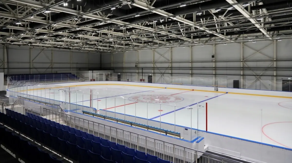 - ✓ на первом этаже — ледовая арена и трибуны на 788 мест, раздевалки и гардеробные; конференц-зал;