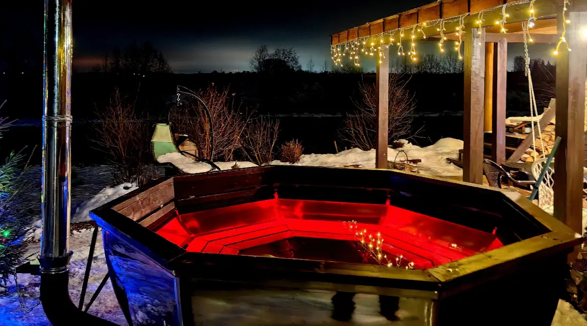 Банный комплекс «У реки» находится примерно в 5 километрах от Вологды, на берегу реки Тошня.