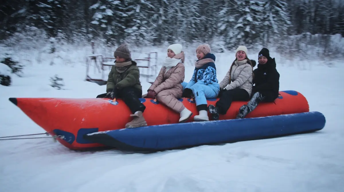 - ✓ зимой катание на катке, на ватрушках с горки и на банане за снегоходом;