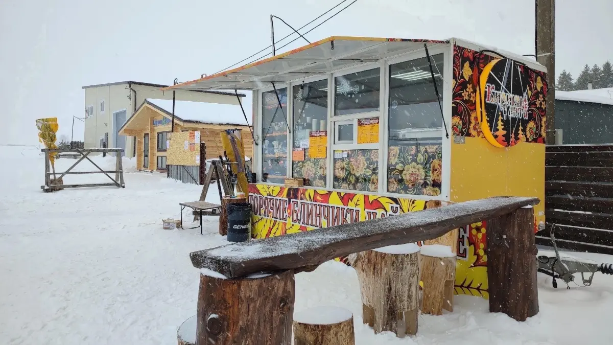 Рядом с трассой работает блинная «Кирики‑Улита», где подают блины, чай, кофе и безалкогольный глинтвейн.