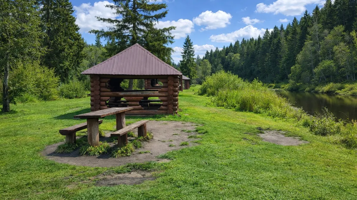 Благоустроенное место для пикника с беседками на Комёле