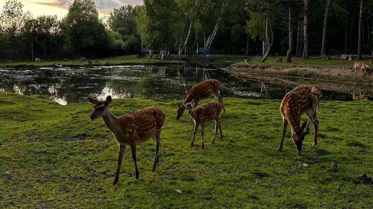 - ✓ вольер с пятнистыми оленями, которых можно покормить и погладить;