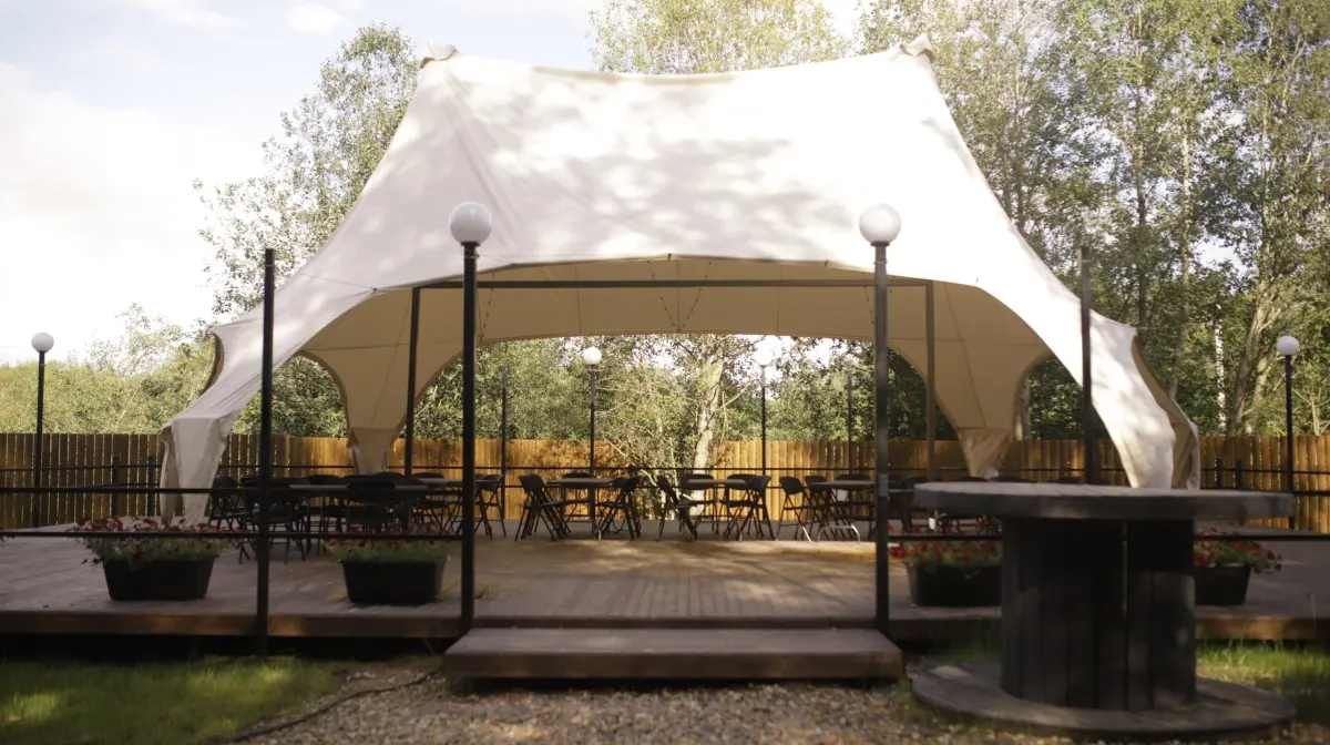 На территории клуба есть горка для катания на ватрушках, а также домик с кроликами, курицами и гусями, которые привлекают детей. Гости могут арендовать беседки с мангалами, коптильнями, казанами и другой посудой. Есть оборудованные зоны для прогулок, занятий спортом и активного отдыха на свежем воздухе. На базе можно организовать свадьбу, корпоратив и другие мероприятия.