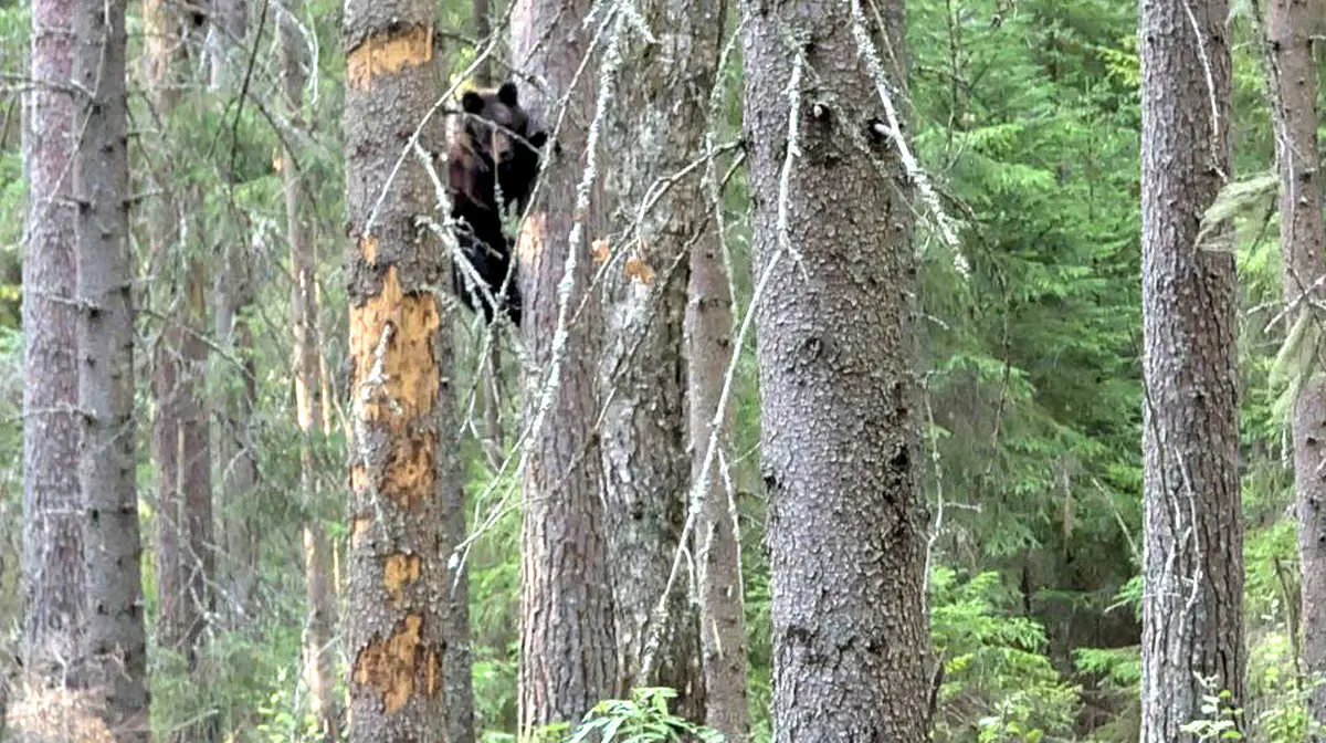 Мужчина правильно среагировал на угрозу: начал громко шуметь, не поворачивался спиной и медленно отступал. Медведь, испугавшись, забрался на дерево, откуда наблюдал за человеком.