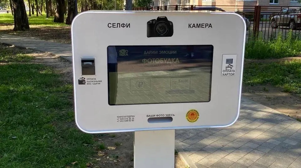 В парке Ветеранов установили аппарат для моментальной печати фото. Можно сделать селфи, выбрать фильтр, размер фотографии и тут же её напечатать. Услуга платная.