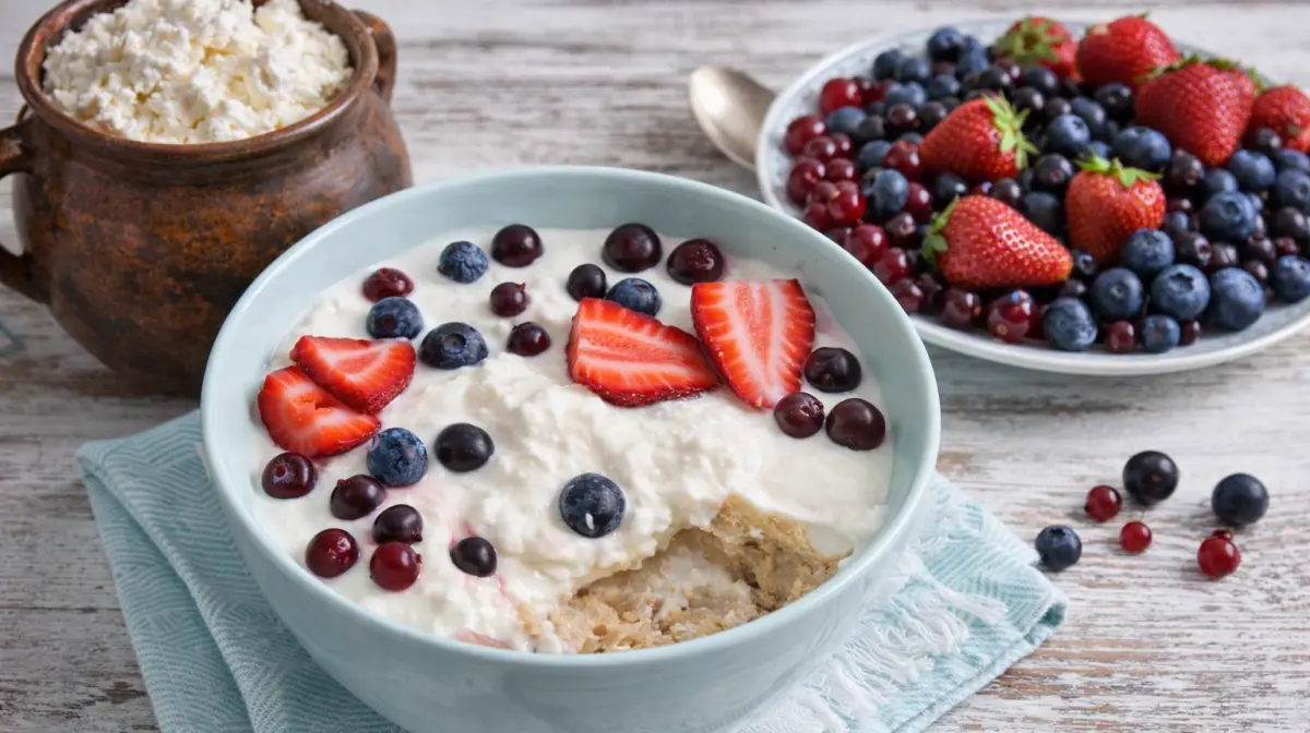 Дежень принято есть, захватывая ложкой одновременно сухое толокно и творожную смесь — так раскрывается полный спектр вкусов и текстур. Ягоды придают свежесть и лёгкую кислинку, уравновешивая насыщенность основных компонентов.
