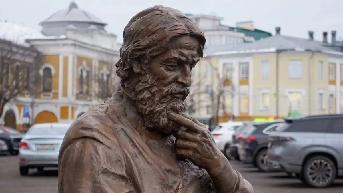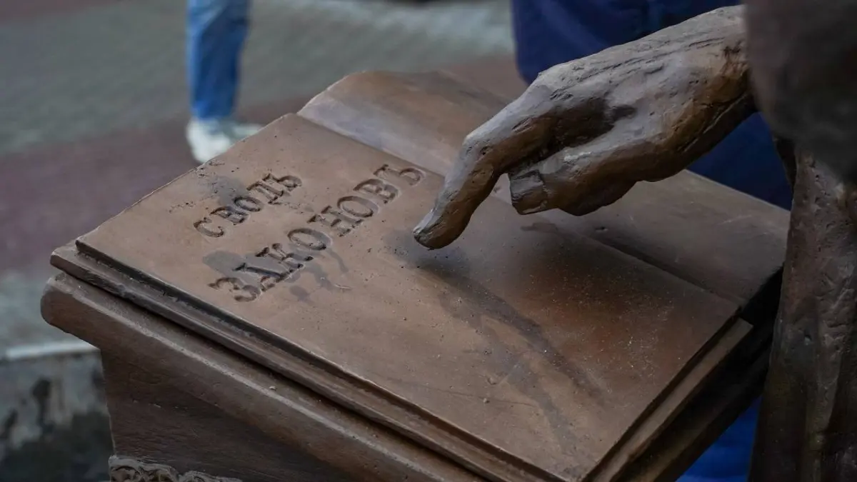 Бронзовая фигура «Ходок» установлена рядом со зданием администрации города. Мужчина размышляет над книгой «Свод законов».