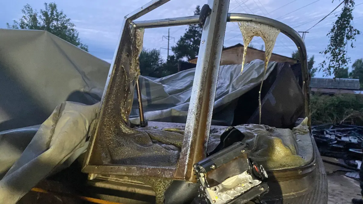 Ночью соседи заметили, что сарай горит и вызвали пожарных, которые ликвидировали пожар на площади 22 кв.м. Деревянное строение было практически полностью уничтожено огнём, также пострадал расположенный рядом металлический гараж с хранившейся в нём моторной лодкой.