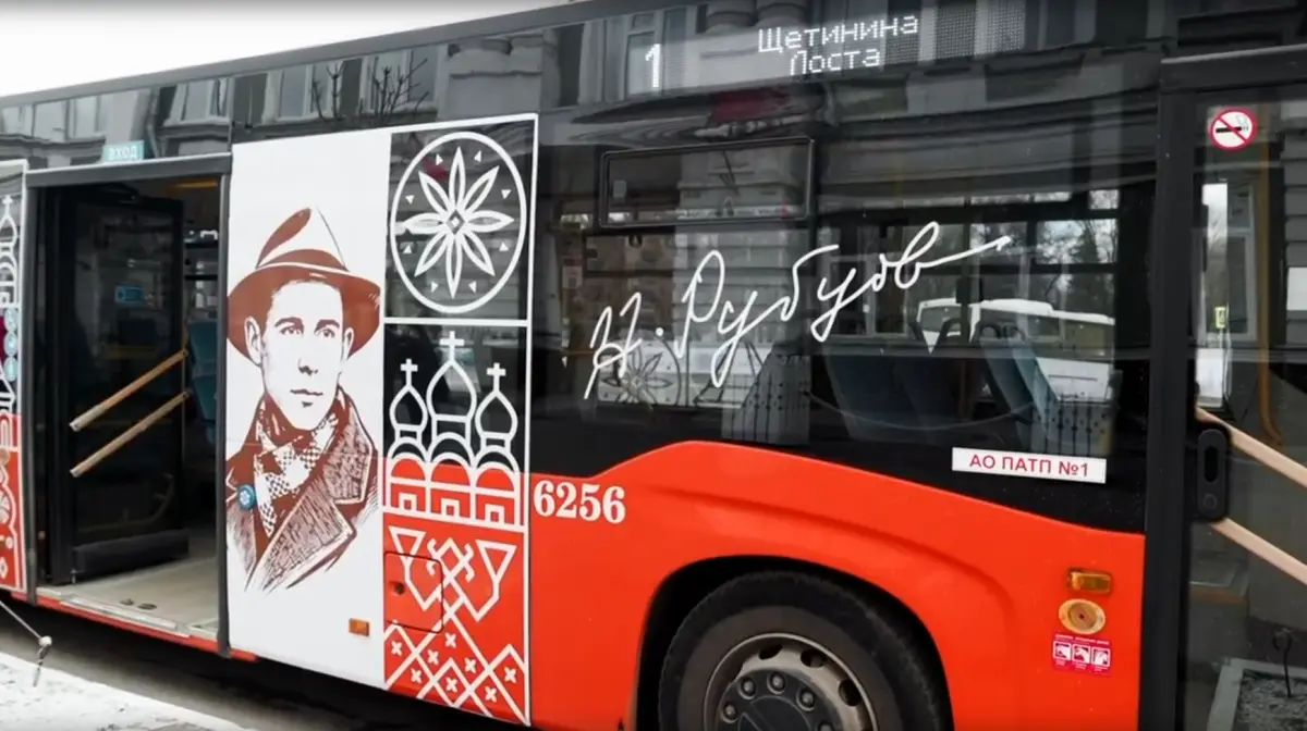 В Вологде запустили ещё два «литературных» автобуса. Они оформлены в дизайн-коде региона с портретами Николая Рубцова и Василия Белова и строками из их произведений.