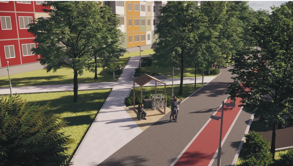 Проект включает комплексное благоустройство территории: организацию комфортных зон отдыха со скамейками; создание велодорожки; обустройство парковочных мест под углом 45 градусов; озеленение территории; установку тематических фотозон и арт-объектов; размещение современных парклетов с зонами отдыха и озеленения; введение нестационарных торговых объектов в едином стиле.
