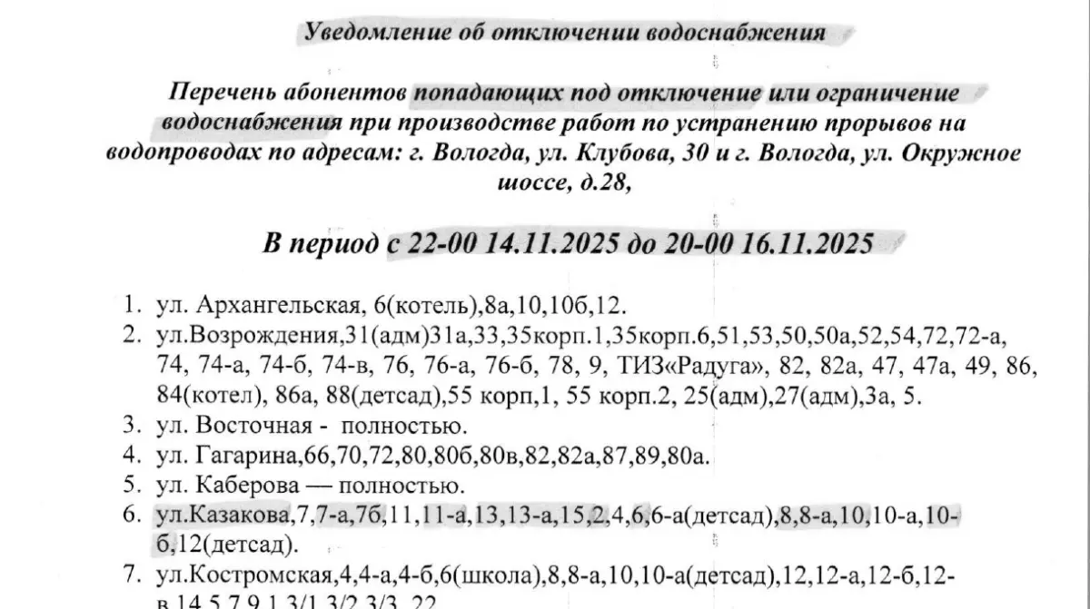 С 22:00 14 ноября до 20:00 16 ноября отключат или ограничат водоснабжение на многих улицах. Причина — прорывы на трубопроводах.