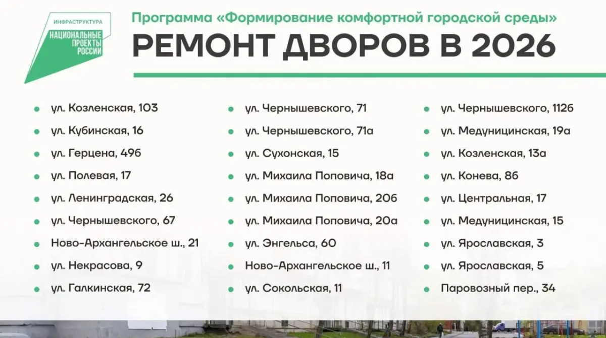 Появился список дворов, которые планируют отремонтировать в 2026 году.
