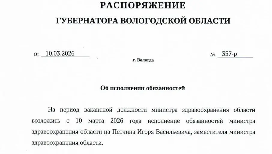 С 10 марта обязанности министра здравоохранения Вологодской области исполняет Игорь Петчин. Кандидатуру рекомендовал Михаил Мурашко, глава Минздрава РФ.