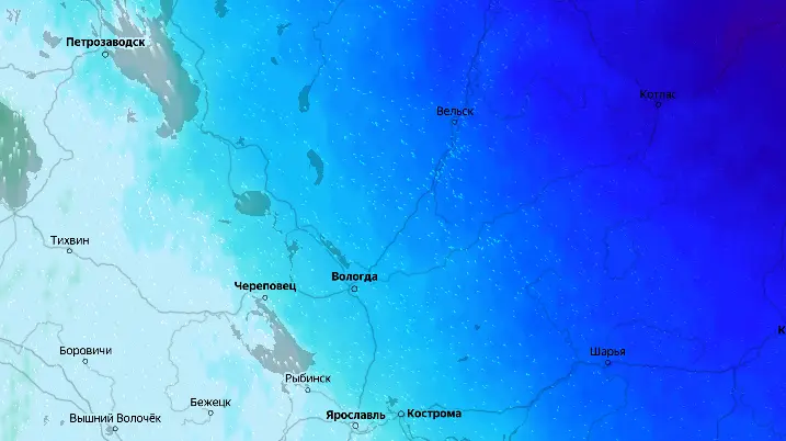 В ночь на 8 декабря температуры в Вологодской области были от +0,1 °C в Устюжне до —24 °C в Великом Устюге. Область оказалась на границе двух воздушных масс: тёплая атлантическая на западе и холодная арктическая на востоке.