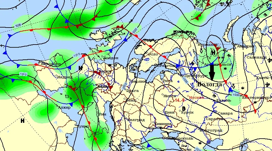 Ранее ожидалось, что в выходные на Вологодчину придёт холодный сибирский воздух. Но его не пускает антициклон с севера.