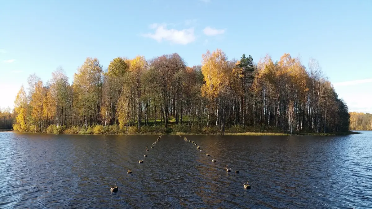На островном холме в 1770 году возвели деревянную церковь. К храму прокладывал путь деревянный мост, а от берега к нему тянулась липовая аллея — старые липы и сегодня заметны среди прочей растительности. До 1950‑х годов рядом с церковью располагалось кладбище; по рассказам местных, на острове до сих пор обнаруживают могильные камни с именами крепостных XIX века. Храм разрушили в советские годы, однако из воды доныне выступают деревянные столбы — остатки моста.