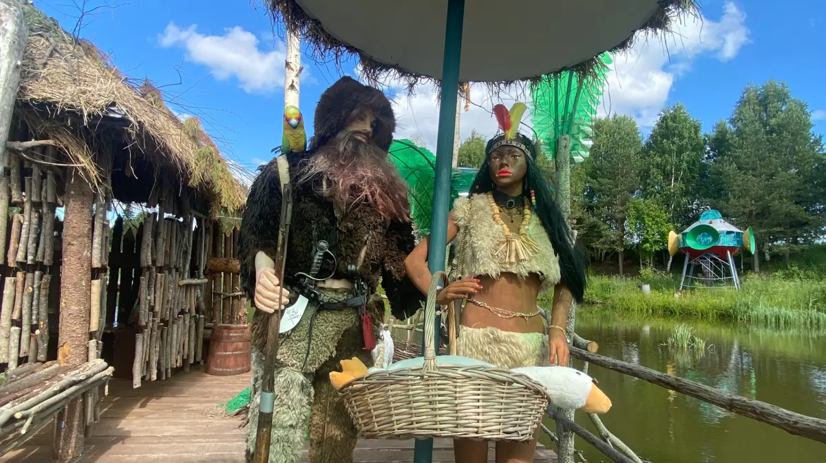 - ✓ Сказочная поляна, где расположены мост через озеро, избушка на курьих ножках, сундук с золотой цепью и фигуры героев мультфильмов и кино.